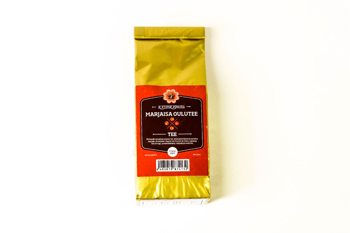 Marjaisa Oulutee on pehmeän savuinen mustatee, johon piristyksensä tuovat raikkaat punaiset marjat - punaviinimarja, karpalo ja vadelma. Tee on maukas ja lämmin tuliainen Oulusta teen ystävälle.
