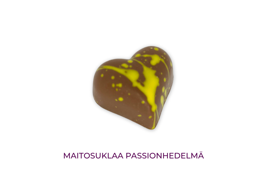 Ainesosat: sokeri, kaakaovoi, täysmaitojauhe, kaakaomassa, emulgointiaine auringonkukkalesitiini, vaniljauute), lime, passionhedelmä, laktoositon voi, laktoositon kerma, glukoosisiirappi, piparminttuöljy, appelsiiniöljy, vanilja, elintarvikevärit (E104, E110, E133).