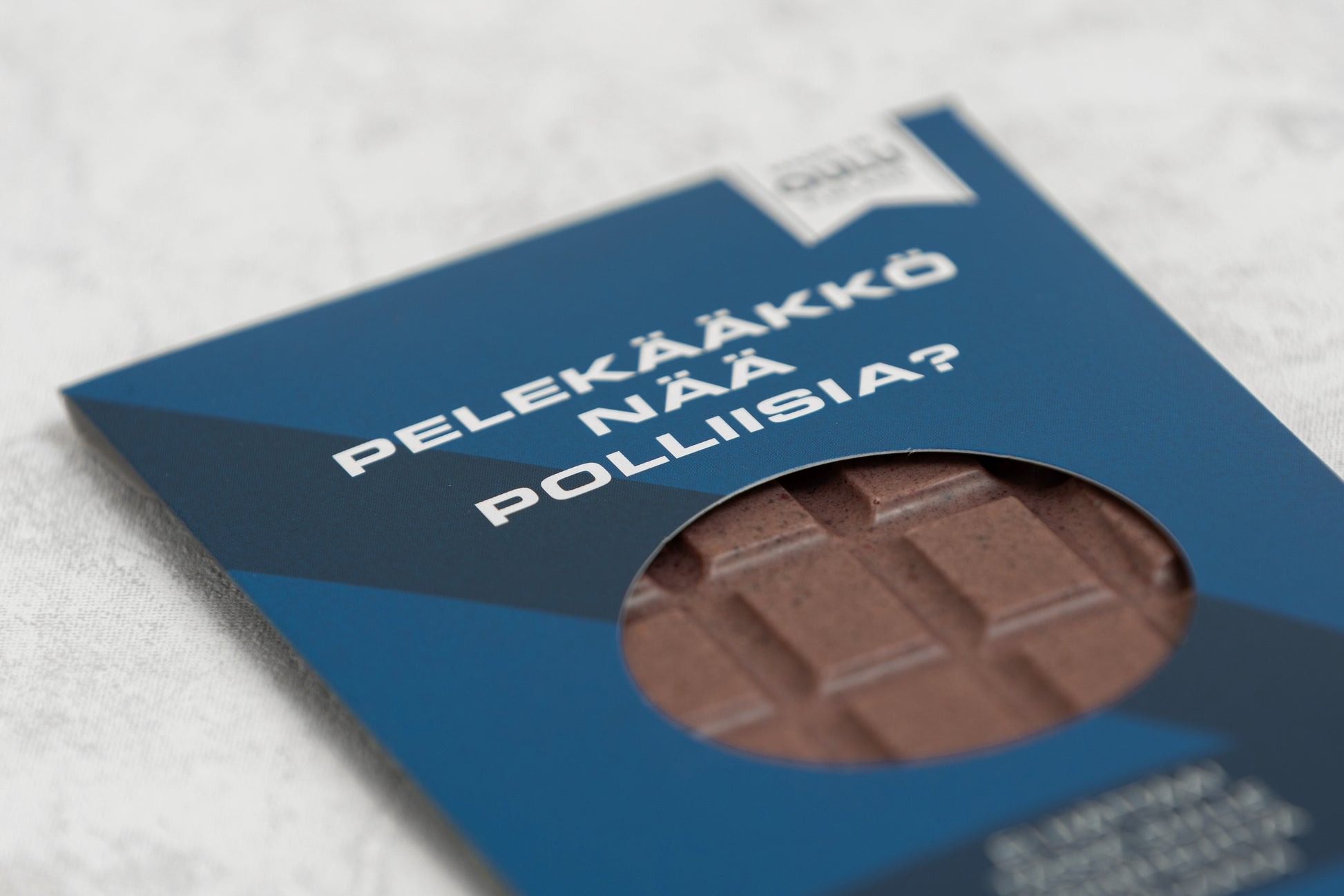 ”Pelekääkkö nää polliisia?” -kysymys on perinteinen Oululainen ilmaisu, joten sehän sopii mainiosti myös suklaalevyyn.