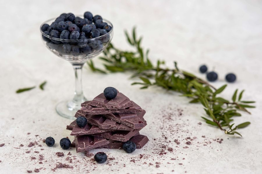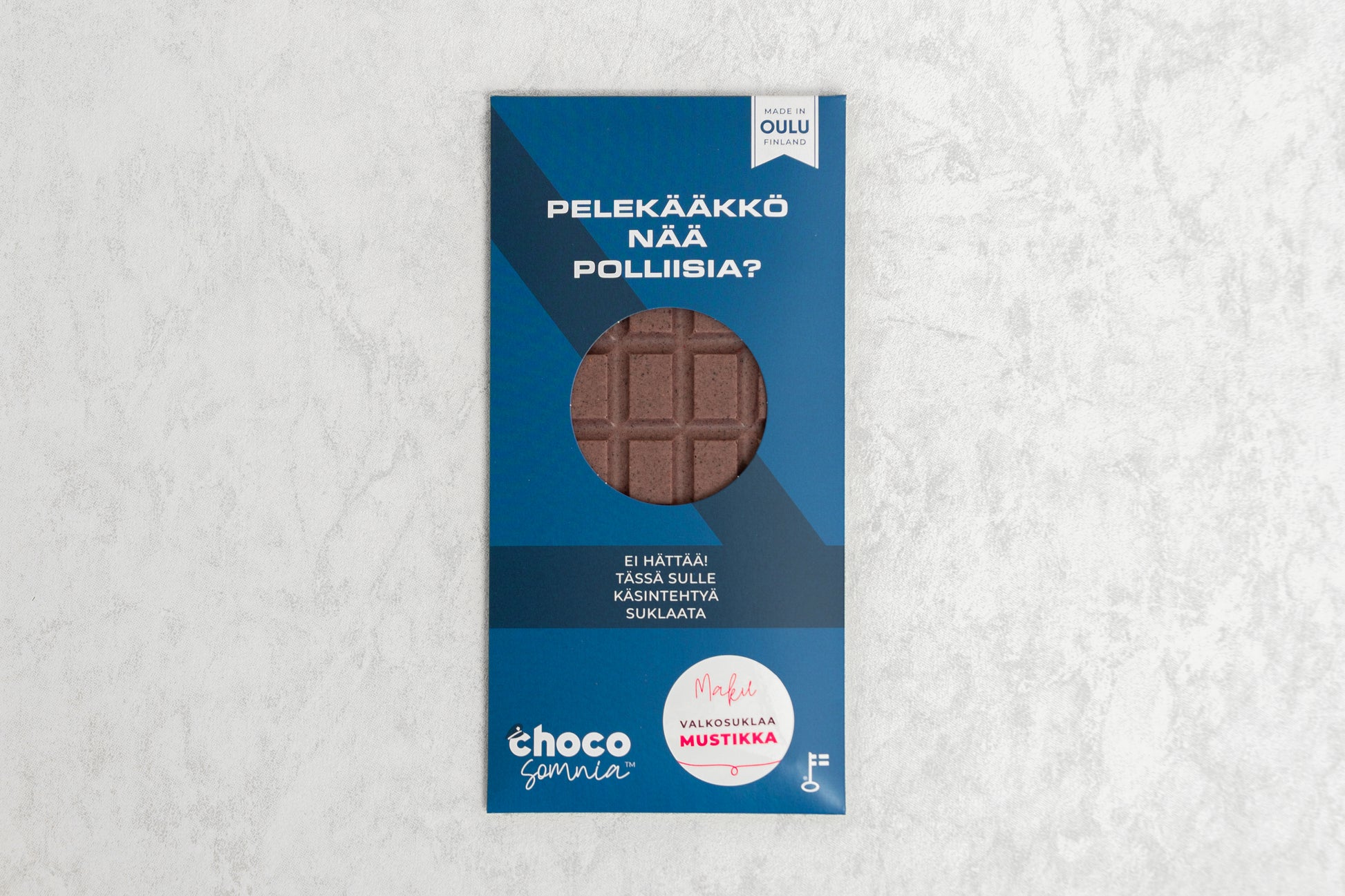 Suklaalevyn makuna valakosuklaa-mustikka.