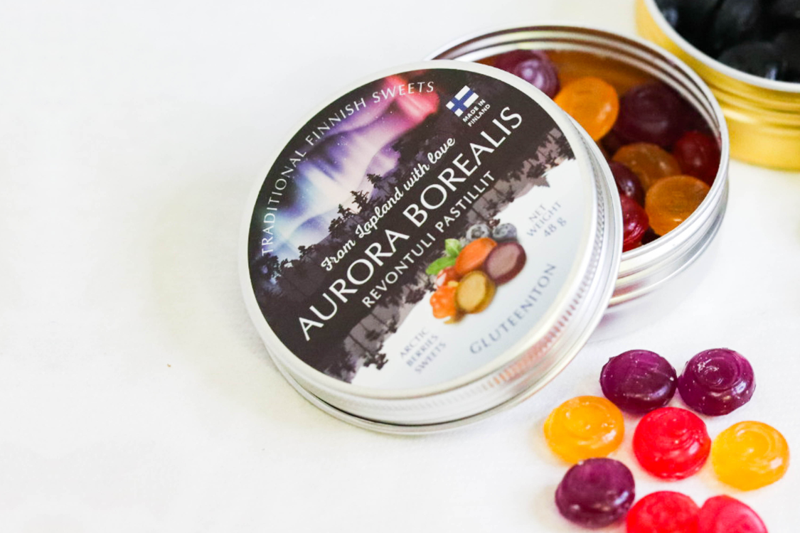 Aurora Borealis -revontulipastillit ovat saaneet innoituksensa revontulten välkkeestä ja pohjoisen marjoista. Kovat pastillit hemmotellevat maistajaansa makealla maullaan.