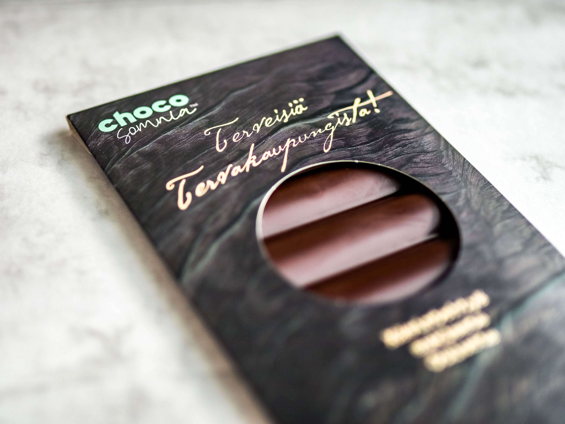 Terveisiä tervakaupungista -suklaalevy (veg)