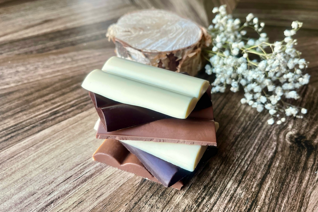 Ingredients: Chocolate (sugar, cocoa butter, milk powder, cocoa 35%, emulsifier sunflower lecithin, vanilla extract).
