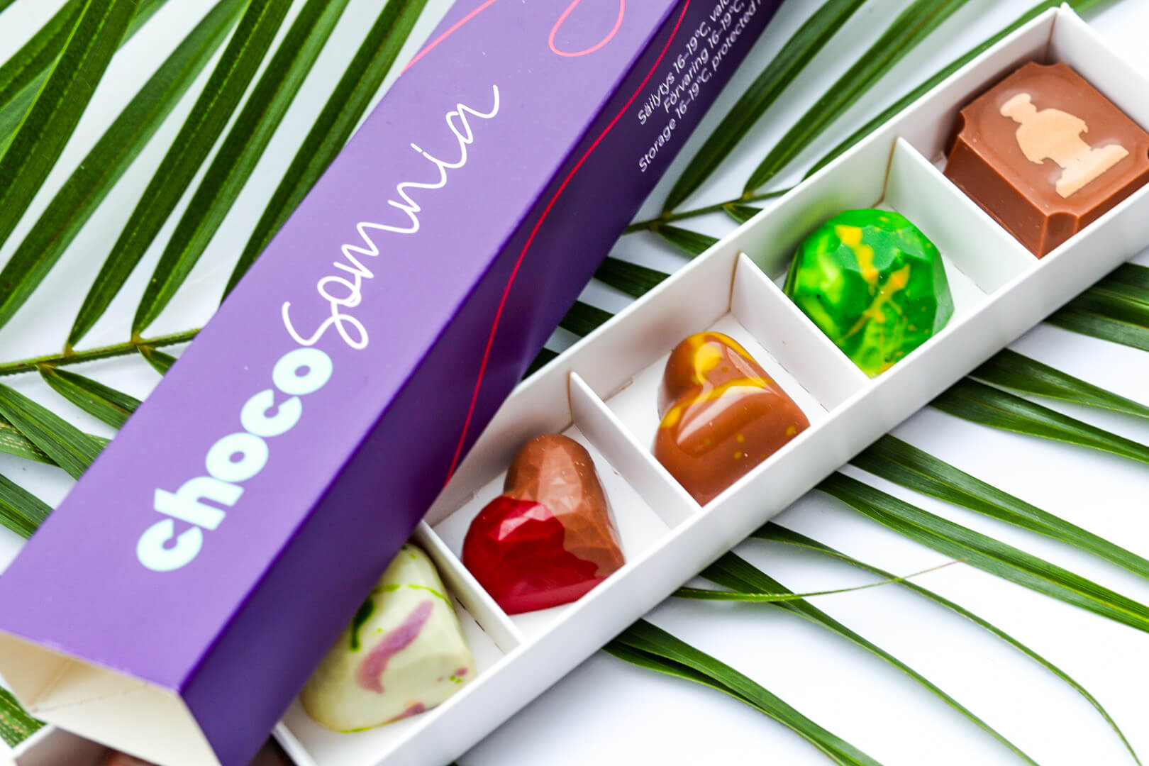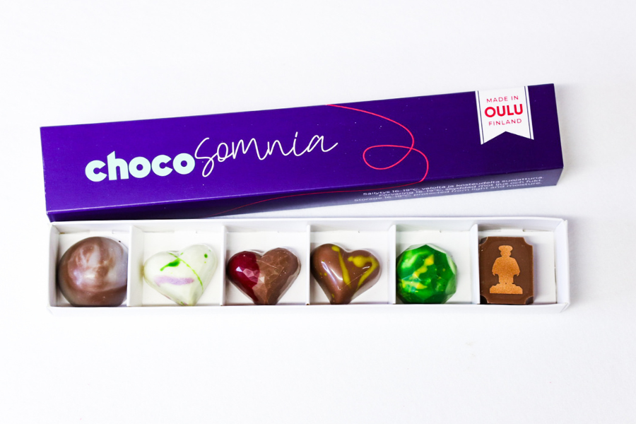 Maukas 6 konvehdin rasia täynnä marjaisia, hedelmäisiä sekä karamellisia makuja. Rasiassa käsintehtyjä konvehteja, joiden raaka-aineina on käytetty vain laadukkaita ja aitoja raaka-aineita, marjoja ja hedelmiä.