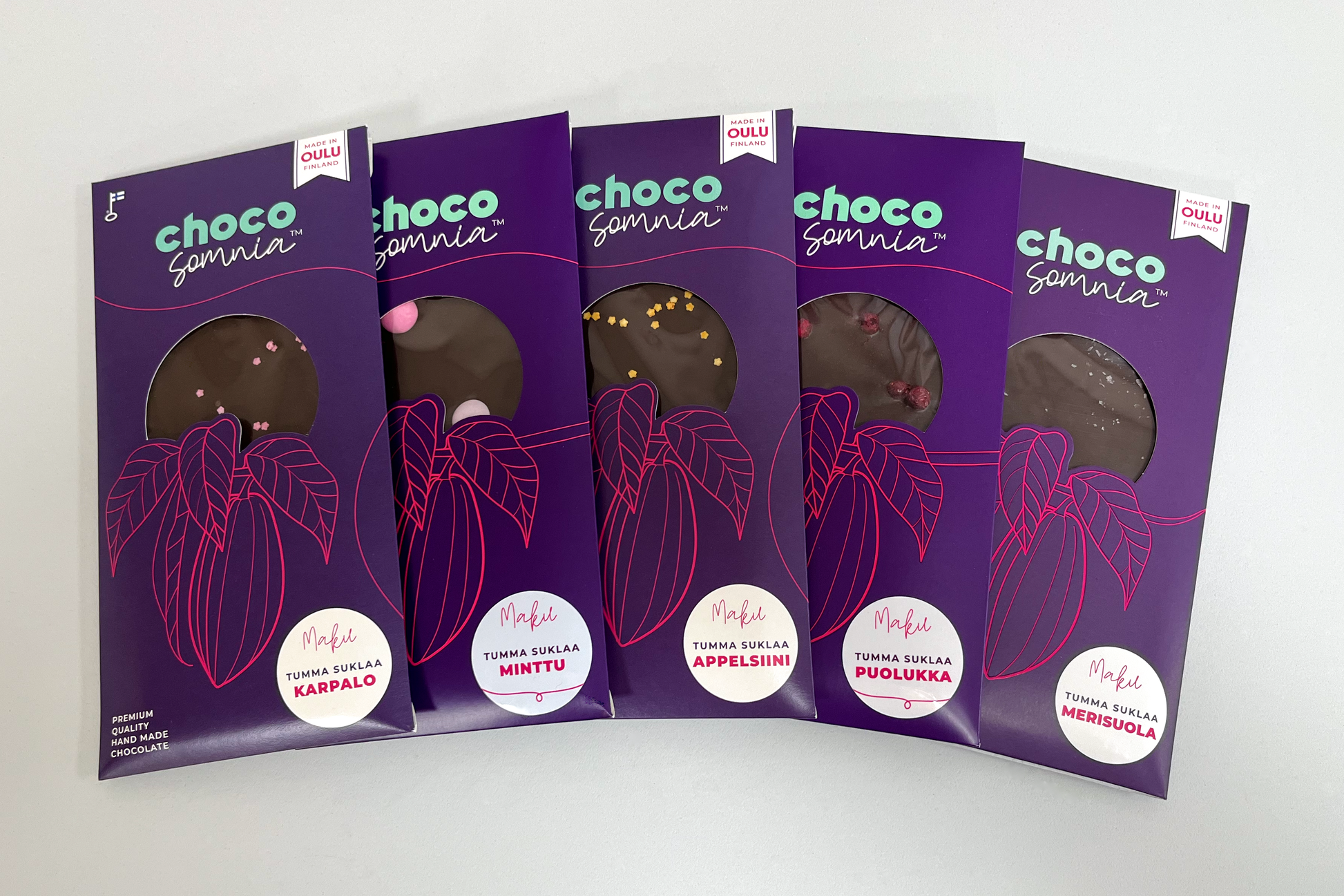 Ainesosat: Tummasuklaa karpalo: tummasuklaa (kaakao 62%, sokeri, kaakaovoi, emulgointiaine auringonkukkalesitiini, vaniljauute), karpalo 7%, sokerikoriste. Tummasuklaa minttu: tummasuklaa (kaakao 62%, sokeri, kaakaovoi, emulgointiaine auringonkukkalesitiini, vanilijauute), minttusuklaarae 2% (sokeri, kaakao, kaakaovoi, sakeuttamisaine (E414), värit, emulgointiaineet (auringonkukka- ja rypsilesitiini), kasviöljyt (kookos, palmu), aromi), piparminttuöljy. Tummasuklaa appelsiini: tummasuklaa (kaakao 62%, sokeri, kaakaovoi, emulgointiaine auringonkukkalesitiini, vaniljauute), appelsiiniöljy, sokerikoriste. Tummasuklaa puolukka: tummasuklaa (kaakao 62%, sokeri, kaakaovoi, emulgointiaine auringonkukkalesitiini, vaniljauute), suomalainen puolukka. Tummasuklaa merisuola: tummasuklaa (kaakao 62%, sokeri, kaakaovoi, emulgointiaine auringonkukkalesitiini, vaniljauute), merisuola 1%.